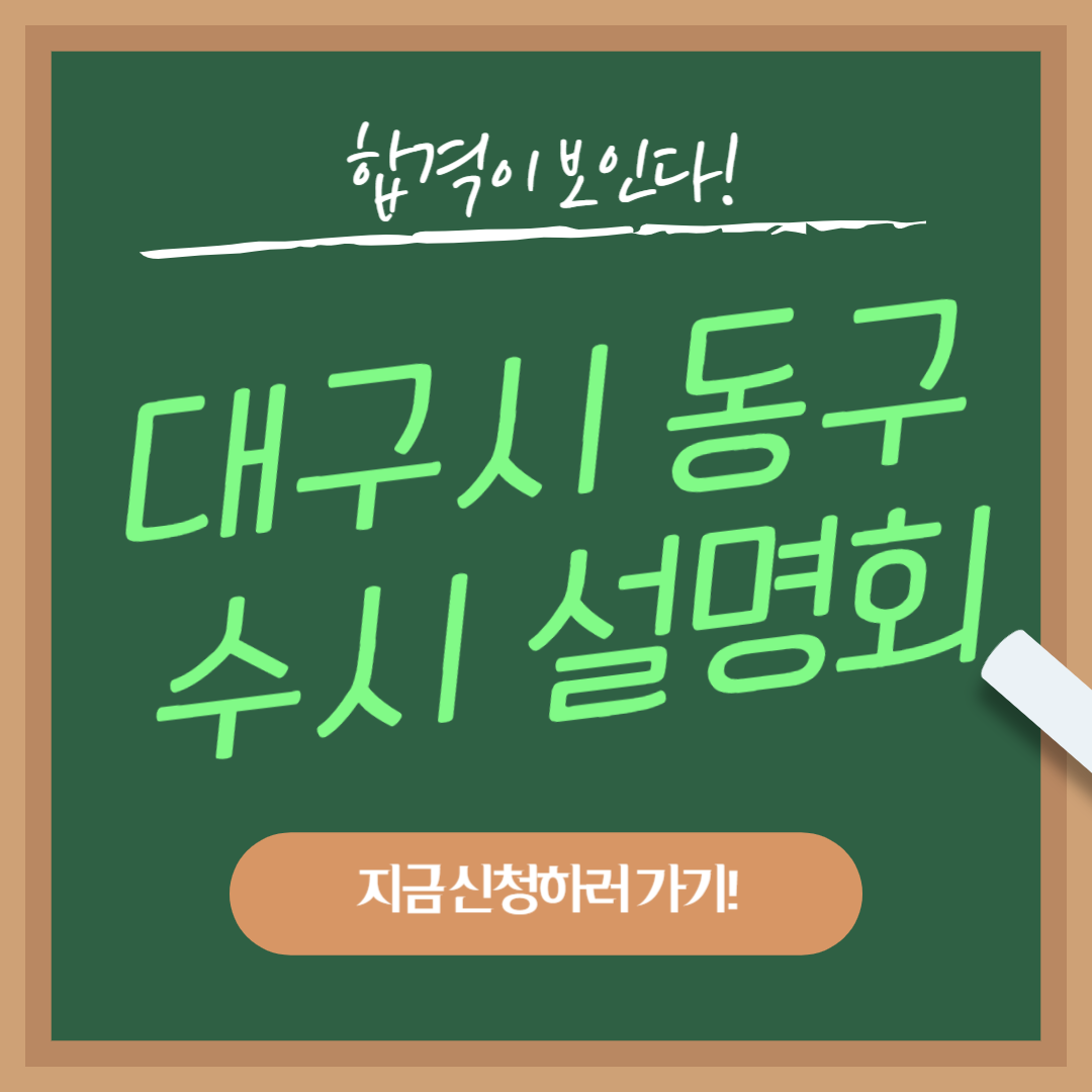 오늘은 이번 주말에 대구광역시 동구 주민과 학생, 학부모를 대상으로 개최하는 대구광역시 동구 2025학년도 수시전형 대비 대입설명회에 대해 알아보겠습니다. 또한 2025학년도 대비 대입 수시전형 집중상담 신청 방법에 대해서도 포스팅하겠습니다.